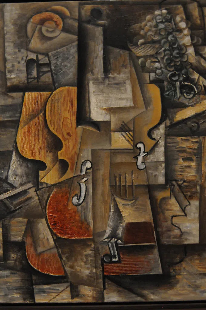 Photography helped push painting into the modern world, and modern painters inspire photographers to this day. Gomrich points out that David Hockney’s photographs of multiple images, like “Still Life Blue Guitar”, are reminiscent of Cubist paintings, such as Picasso’s “Violin and Grapes”.
