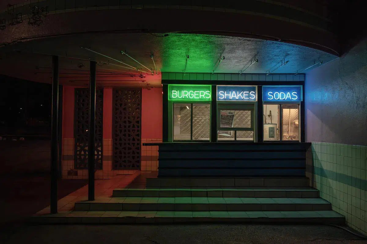 Neon signs on an old dinner in Los Angeles that was re-opened for one night of filming.