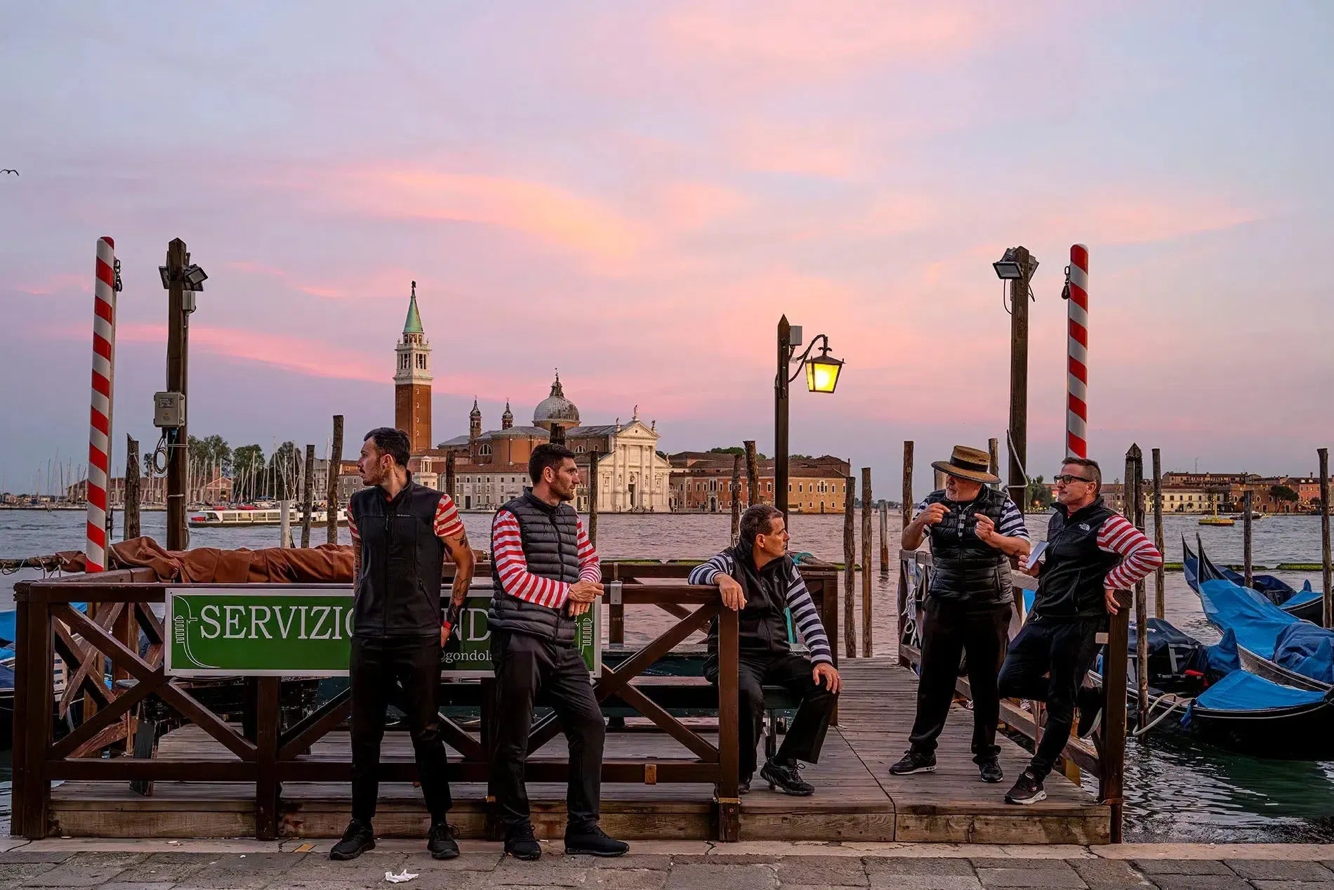 Gondoliers, Venice, by Dario Preger