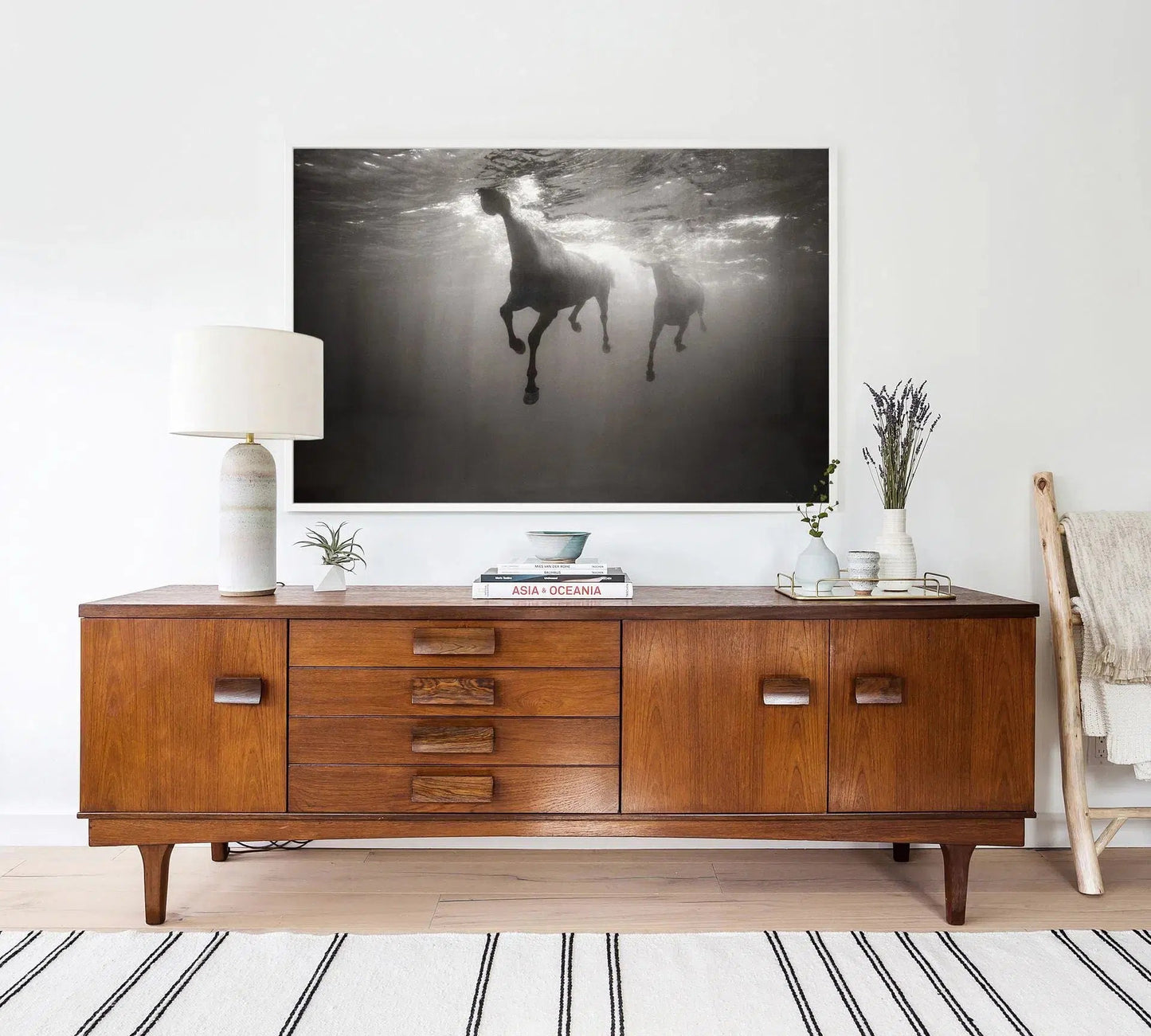 Created completely underwater, Equus: Underwater Rhythm is a limited edition print series exploring the power of the horse against the backdrop of the prismatic, crystalline world hidden just below the surface of the sea.