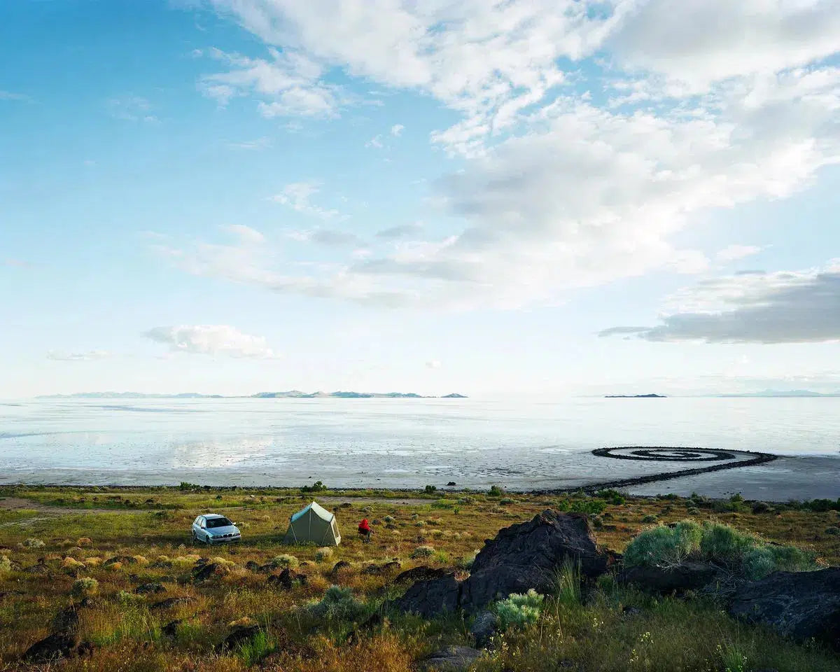 Camp at Robert Smithson's Spiral Jetty on the Great Salt Lake in Utah