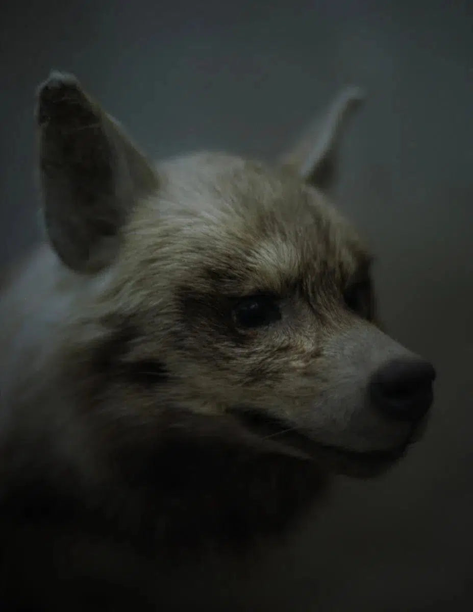 The shell devoid of meaning. Lack of movement and traction for life. Frozen sparkle inside of the glass eyes. Frozen forever pose. Shadow and form thats what left. Now so close and safe. The wild form.